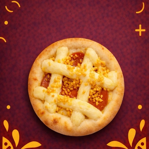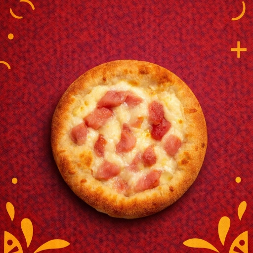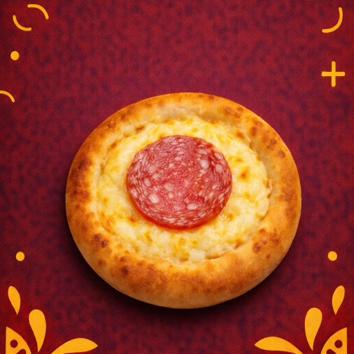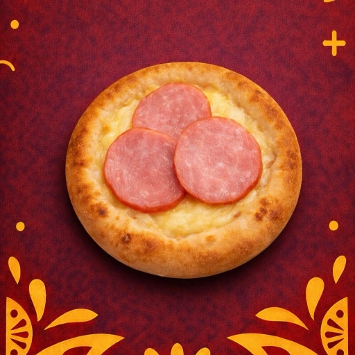 Deliciosa esfiha forrada com queijo mussarela, acompanhada de uma fatia de salame.
